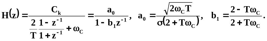 Применим метод билинейного преобразования для получения передаточной функции рекурсивного формирующего фильтра. В соответствии с (2.85) передаточная функция цифрового формирующего фильтра равна