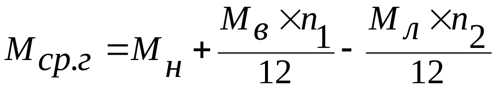 n1, n2 - количество полных месяцев с момента ввода мощностей в действие до конца года и с момента выбытия до конца года.
