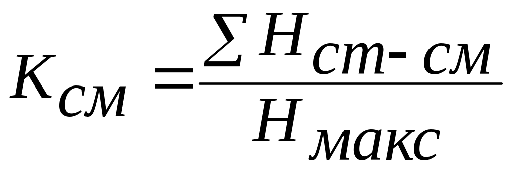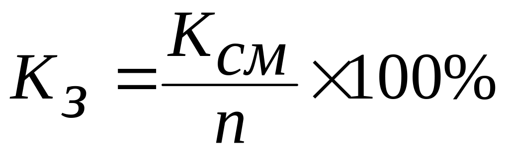 2. Коэффициент сменности – показывает, во сколько смен в среднем работает каждая единица оборудования в течение рабочего дня.
