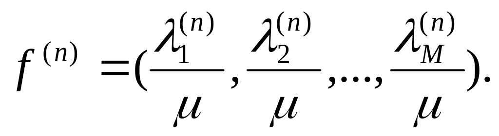 После того как она будет определена, можно повторить процесс опять, находя новые длины, определяя новые кратчайшие маршруты и снова отклоняя поток и так далее до тех пор, пока не будет получена приемлемая характеристика. Введем вектор потока на n-ой итерации: