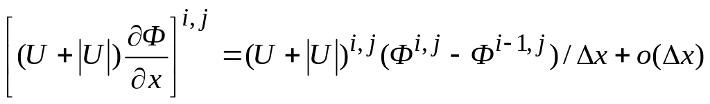 Представление конвективного члена в форме (2) позволяет реализовать двухстадийную схему получения решения, причем на первой стадии корректным образом осуществить маршевую процедуру расчета, связанную с последовательным продвижением в положительном направлении оси Ox. Это возможно, поскольку коэффициент (U+U) при Ф/x всегда неотрицателен даже при наличие в потоке интенсивных возвратных движений.