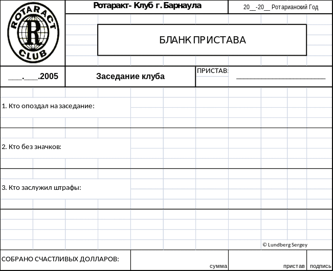 Ниже приводим образец формы протокола очередного заседания клуба, а также бланк пристава.