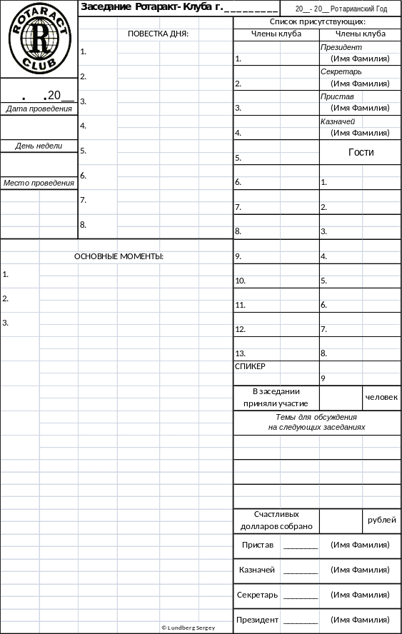 Табель фиксирует количество присутствовавших и гостей на каждом заседании и подписывается секретарем клуба.