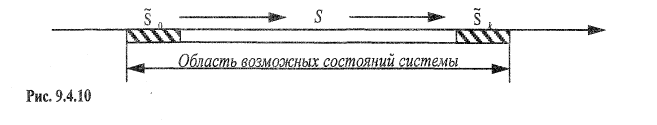 Совокупность состояний, в которые может переходить система, называется областью возможных состояний. В зависимости от числа параметров, характеризующих состояние системы, область возможных состояний системы может быть различной. Пусть, например, состояние системы S характеризуется одним параметром, — координатой х. В этом случае изменение координаты, если на нее наложены некоторые ограничения, изобразится перемещением точки S по оси Ох или по ее участку. Следовательно, областью возможных состояний системы является совокупность значений х, а управлением — закон движения точки S из начального состояния s0 0 в конечное sk k по оси Ох или ее части (рис. 9.4.10).