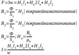 В практических расчетах нет необходимости строить всю кривую от 0 до заданной Hl, достаточно приравнять МДС к магнитному напряжению на участке с большим магнитным напряжением.