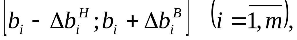 Определим интервал устойчивости оценок по отношению к ограничению по ресурсу I вида. Используя формулы находим: