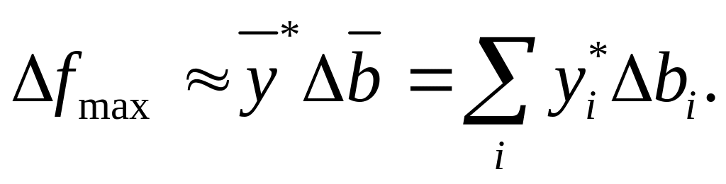 Теорема 1. В оптимальном решении двойственной задачи значения переменных yi*(оценок) численно равны частным производным fmax / bi для исходной задачи.