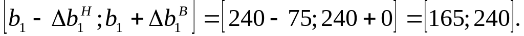 В соответствии с формулами интервал устойчивости оценок по отношению к первому ограничению принимает следующий вид: