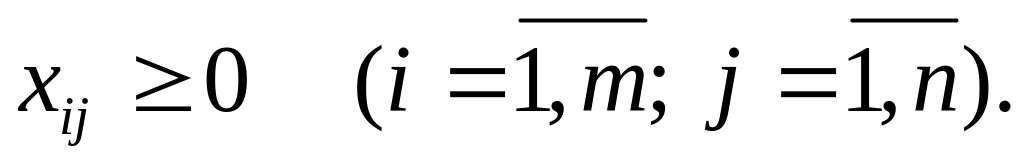 где xij (i = 1, m; j = 1, n) обозначает количество единиц груза, которое необходимо доставить из i-гo пункта отправления в j-й пункт назначения.