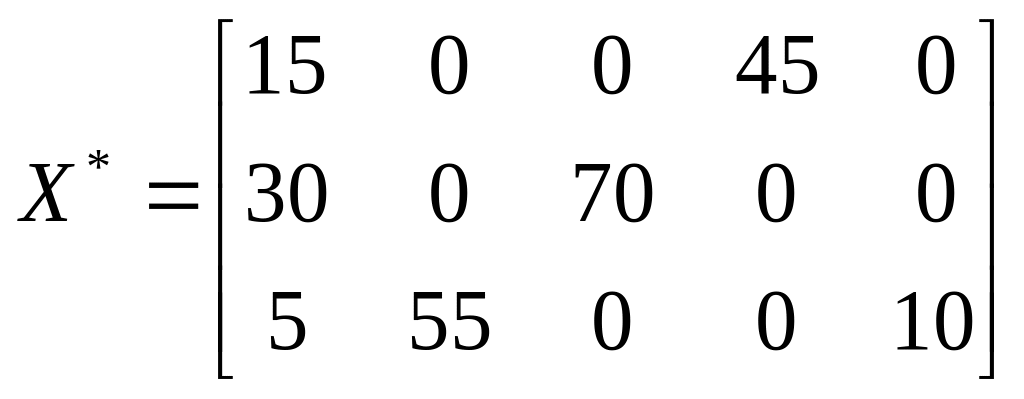 Исходное опорное решение получим, например, по правилу «минимального элемента» табл.5.3.