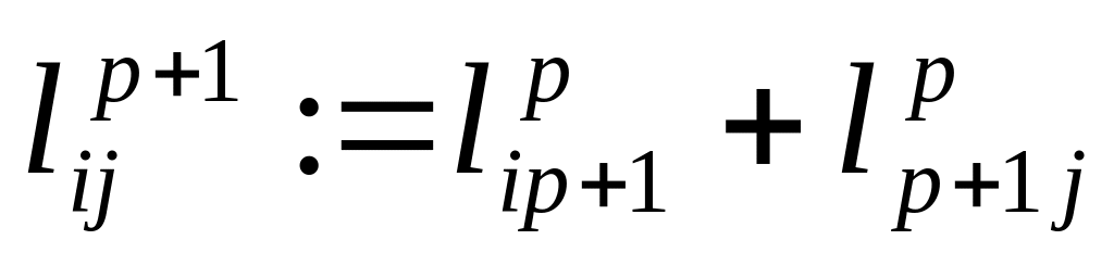Применяя к этим элементам алгоритм Флойда, получаем следующие матрицы: