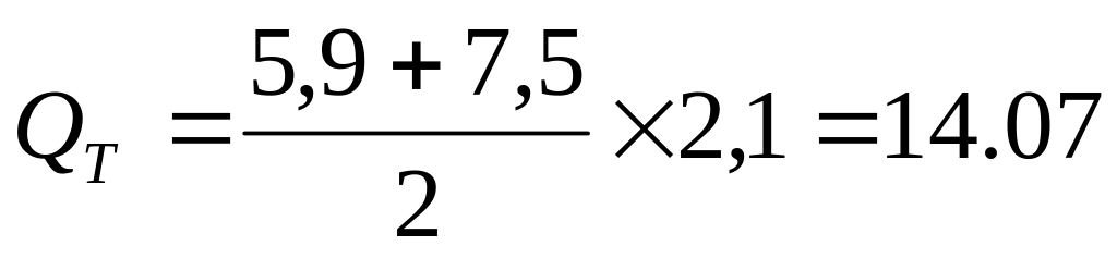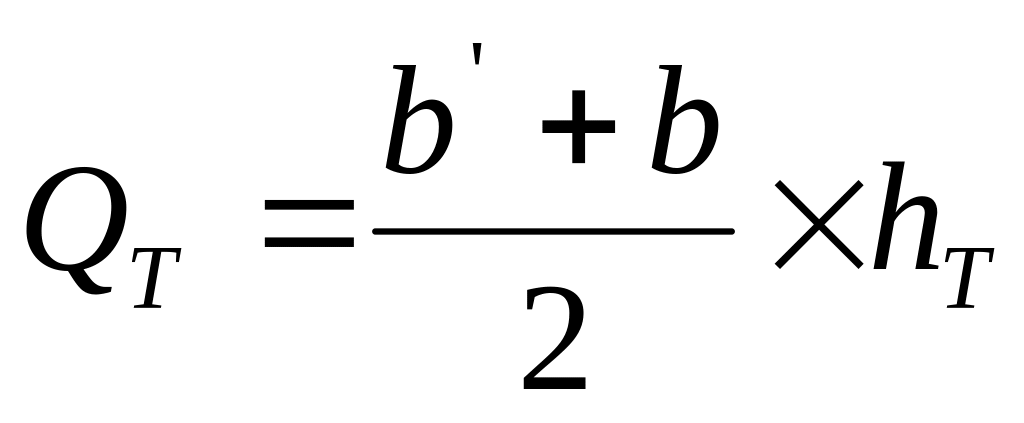 где Qт - площадь трапеции с основаниями b’ и b и высотой hт, мм;