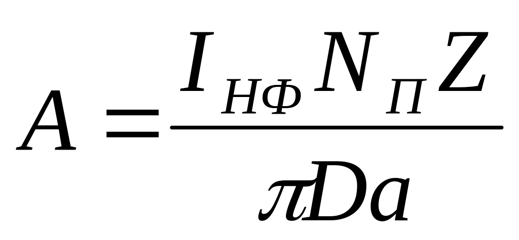Чтобы не допустить существенной ошибки в выборе плотности тока, найденная по формуле величина фазного тока дополнительно проверяется по величине линейной нагрузки. Линейная нагрузка двигателя представляет собой произведение тока на число активных проводников во всех пазах электромашины, приходящихся на один метр окружности внутренней расточки статора машины, А/м: