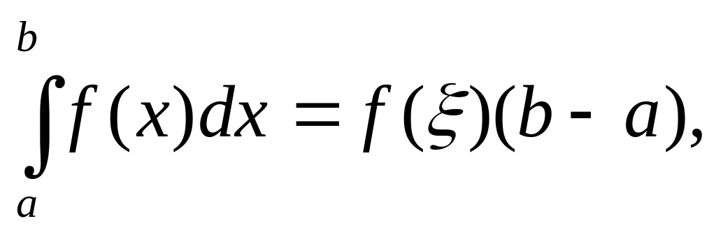 т. е. определенный интеграл от переменной функции равен произведению значения подынтегральной функции в некоторой промежуточной точке ξ отрезка интегрирования [a; b] и длины b-a этого отрезка.