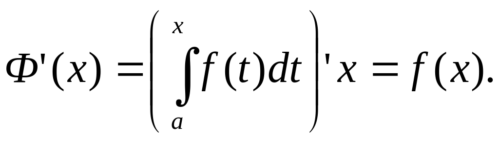 называется определенным интегралом с переменным верхним пределом и является функцией верхнего предела х. Здесь для удобства переменная интегрирования обозначена буквой t, а верхний предел интегрирования – буквой х.