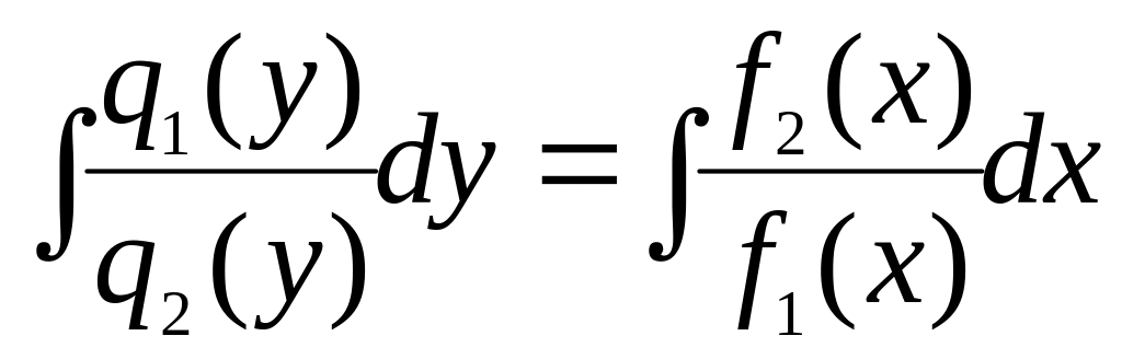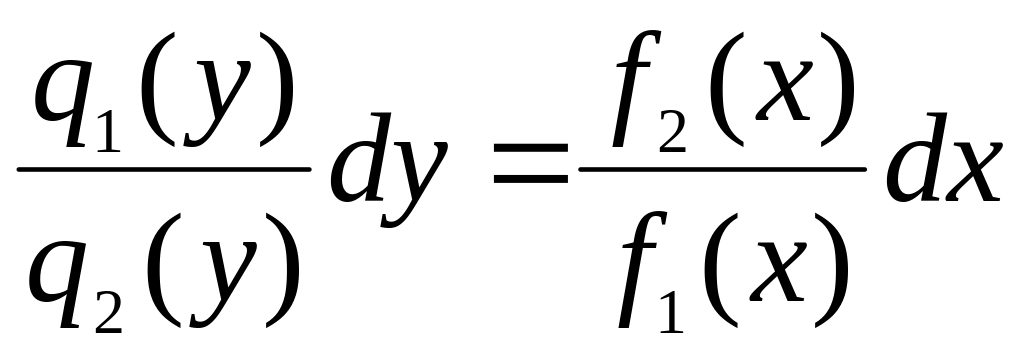 Дифференциальным уравнением с разделёнными переменными называется уравнение вида f1(y)dy = f2(x)dx, которое записано в дифференциальной форме. Здесь f1(y), f2(x) – известные непрерывные функции своих аргументов. Переменные х и у разделены, поскольку в уравнении левая часть содержит лишь переменную у и её дифференциал, а правая часть – только переменную х и её дифференциал.