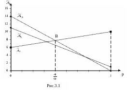 Если р=0 или 1, то имеем ситуацию ПР в условиях достоверности. При р=0 лучшая операция – а3, при р=1 лучшая операция – а2.