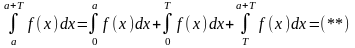 Если f(x) – непрерывная с периодом T, интегрируемая на некотором отрезке длины Т, то она интегрируема на любом отрезке длины Т.