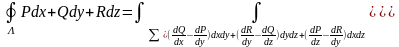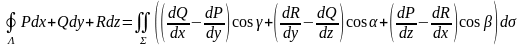 Если граница состоит из нескольких контуров, то формула Стокса остается в силе. При этом в левой части надо написать сумму интегралов по всем контурам, пробегаемым в положительном направлении.
