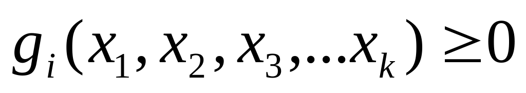 Задачей оптимизации является нахождение значений параметра х1oп, x2oп, … xкоп обеспечивающих максимум целевой функции. Возможно, при выполнении дополнительных условий, которые запишем следующим образом: