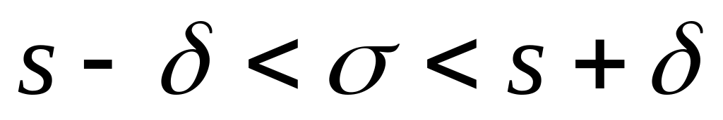Пример. Построить доверительный интервал, покрывающий генеральное среднее квадратичное отклонение с надежностью , если по выборке объема n найдено исправленное среднее квадратичное отклонение s: