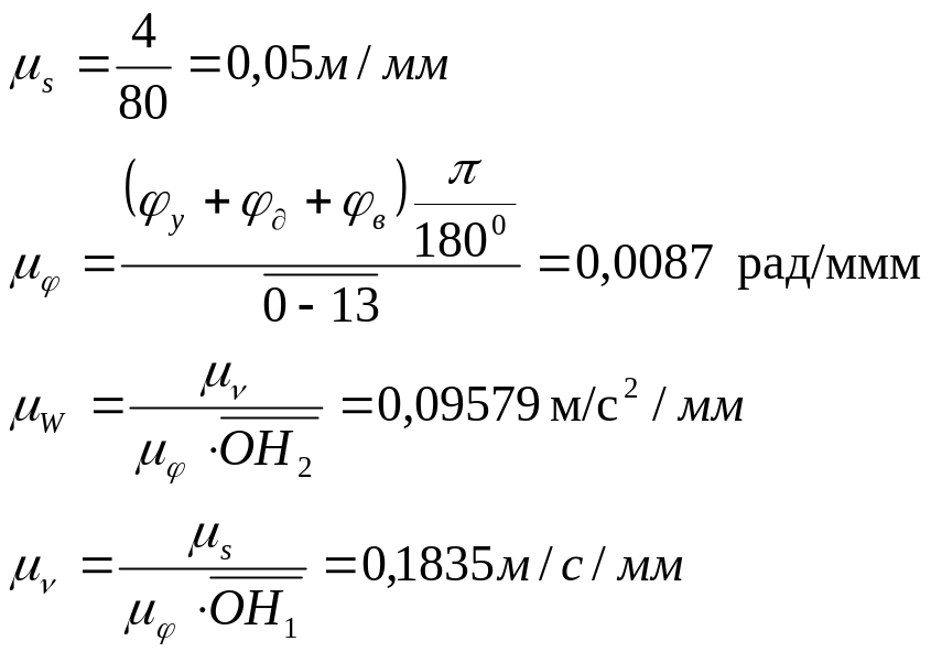 Диаграмму перемещения толкателя s→φ строим как интегральную кривую функции υ→φ, затем определяем масштаб диаграммы.