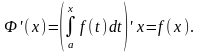 называется определенным интегралом с переменным верхним пределом и является функцией верхнего предела х. Здесь для удобства переменная интегрирования обозначена буквой t, а верхний предел интегрирования – буквой х.