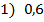 2) 0,4; 3) 1;
