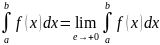 Пусть функция f(x) непрерывна a ≤x≤b и имеет точку разрыва при x=b. Тогда соответствующий несобственный интеграл от разрывной функции определяется формулой