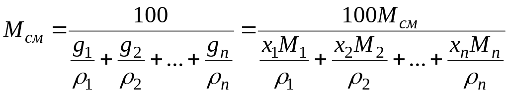 где V — общий объем смеси; Vi — парциальный объем i-го компонента в смеси.