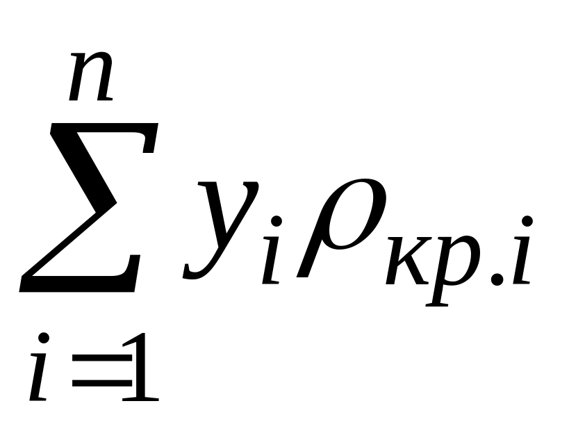 где псевдокритические (среднекритические) параметры смеси (ркр.см; Tкр.см; Vкр.см; кр.см; zкр.см) вычисляются по какому-либо правилу, чаще всего по правилу аддитивности КЭЯ. Аддитивным называется суммарное физическое свойство смеси, определяемое как сумма произведений молярных концентраций компонентов в смеси на свойства этих компонентов,