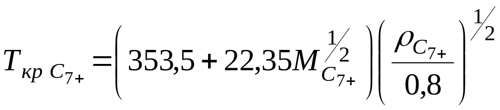 Псевдокритические параметры такого остатка (C7+) при неизвестном групповом составе можно рассчитать по измеряемым величинам: его молекулярной массе — MC7+ и относительной (по воде) плотности C7+ по зависимостям (III.28) и (III.29) или по графикам, приведенным в [6].