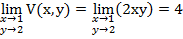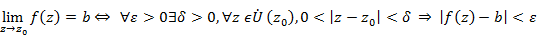 Теорема. Пусть дана точка z0=x0+iy0 и число b=b1+ib2 и в окрестности точки z0 определена функция f(z)=U(x,y) + iV(x,y) тогда b является пределом функции f(z) в точке z0 в том и только том случае когда функции U(x,y) и V(x,y) имеют пределы в окрестности точки (x0,y0) равные b1 и b2 соответственно