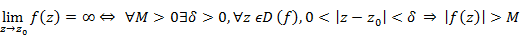 В отличии от предела функции 1й переменной в комплексном анализе рассматривают только 3 вида пределов в которых участвует бесконечно удаленная точка, а именно