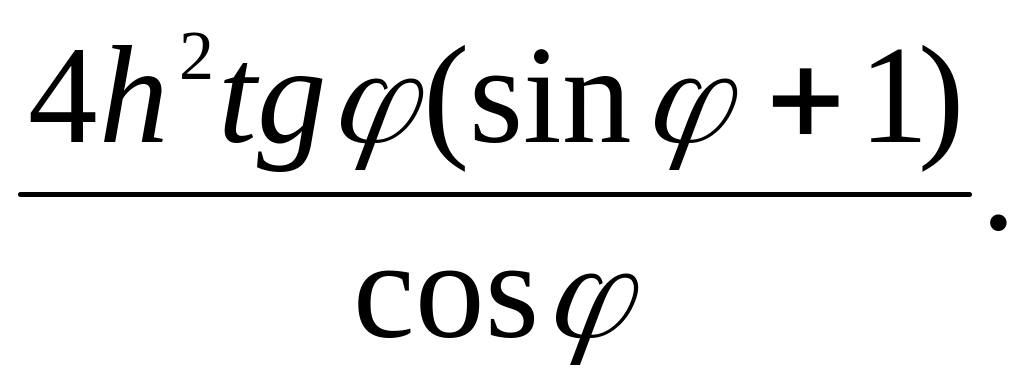 №14. Высота правильной четырёхугольной пирамиды равна h и составляет угол φ с плоскостью боковой грани. Найти полную поверхность пирамиды.