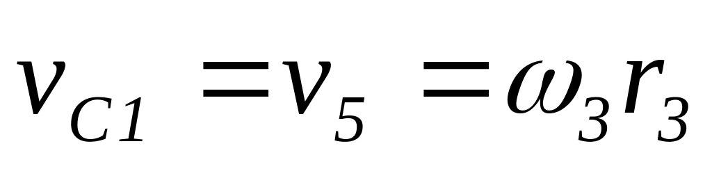 Учитывая, что тело 1 движется плоскопараллельно, тело 5 –поступательно, а тело 3 вращается вокруг неподвижной оси, получим: