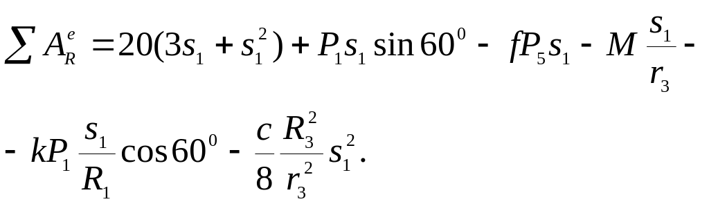 Работа момента M определяется как произведение его величины на угол поворота тела 3 (работа отрицательна, если направления вращения момента и тела различны):