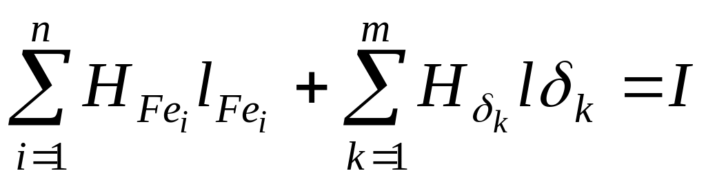 де HFeі і Hδk – відповідно середнє значення напруженості магнітного поля в і‑му феромагнітному участку і k-му зазорі; lFeі і lδk – відповідно довжина і-го