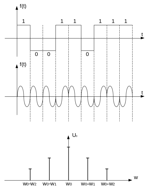 Модуляція - зміна параметрів сигналу перенощика по закону пераваємого повідомлення. При дискретній модуляції закодоване повідомлення перетворюється в послідовність посилок шляхом впливу кодавих символів на переносчик.