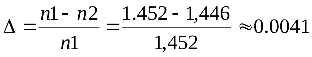 Знайдемо відносну різницю показників заломлення ∆: