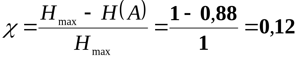 H(A) = -(0,3 log20,3 + 0,7log20,7)= - [0,3(-1,74) + 0,7(-0,52)] = - (-0,52 – 0,36) = 0,88 (бит)