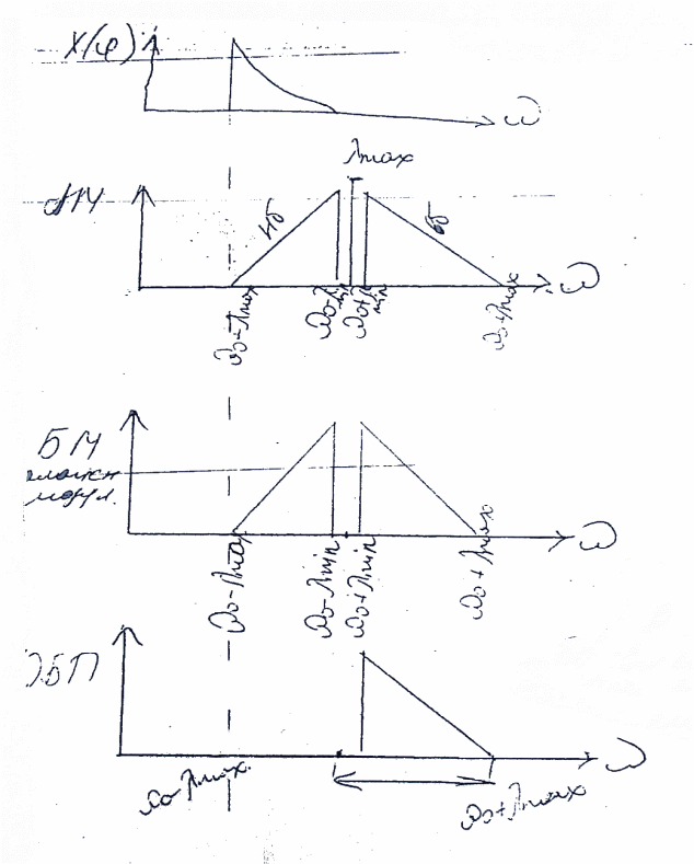 модуляции : М= C целью лучшего использования передатчика инф. несущую подавляют. С целью лучшего использования полосы пропускания используется амплитудная модуляция одной боковой полосы.
