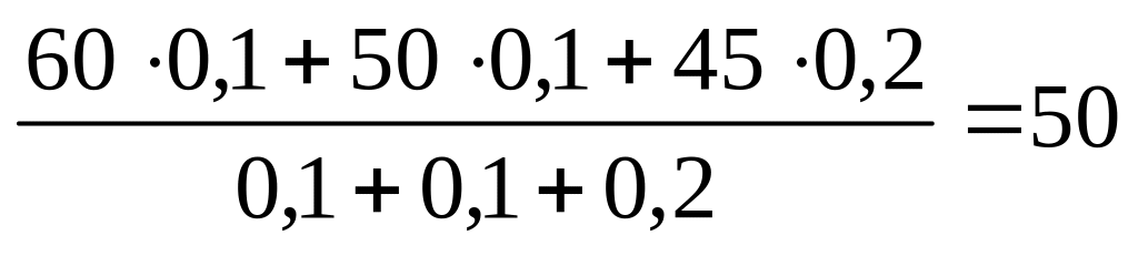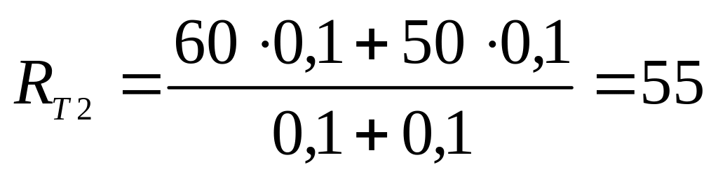 Rитог = 50∙0,4 + 50·0,6 = 50