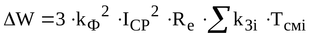 Якщо середній струм визначається для найбільш завантаженої зміни, то втрати електроенергії у лінії визначаються за формулою: