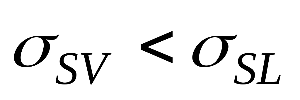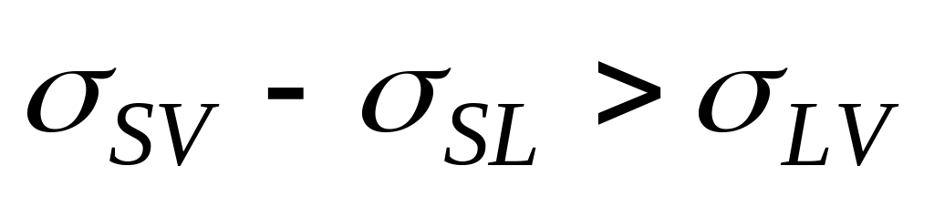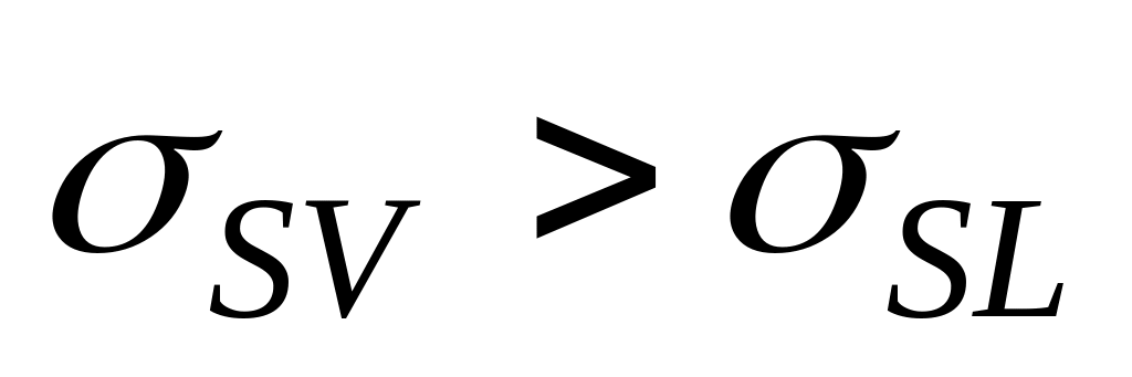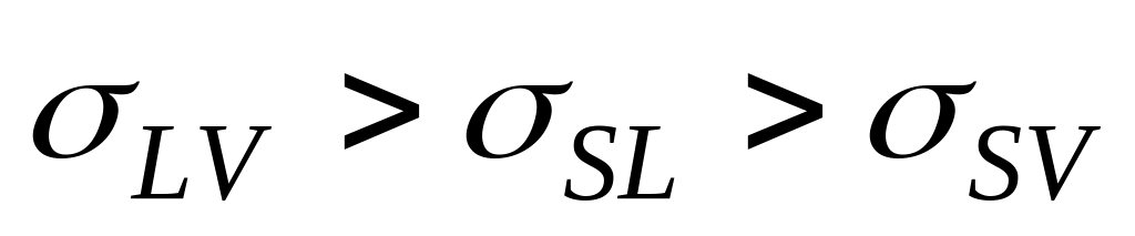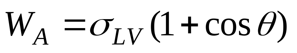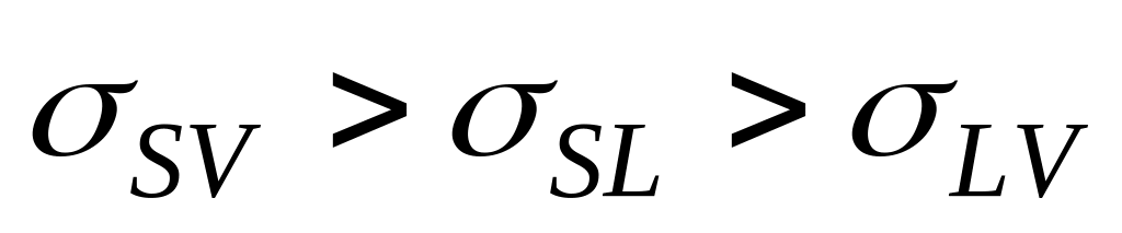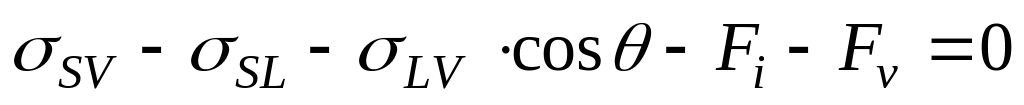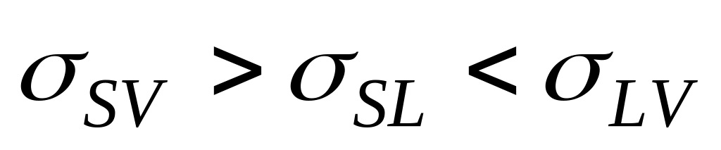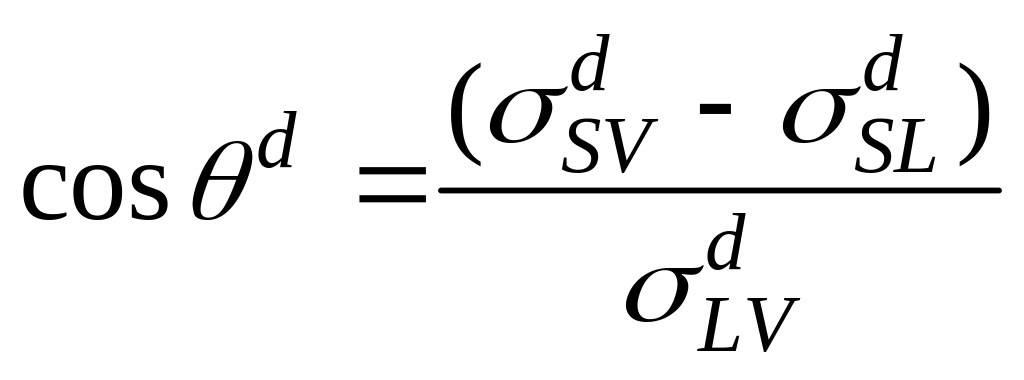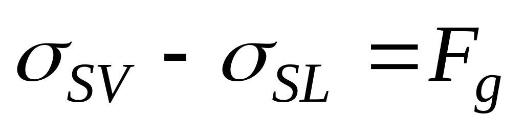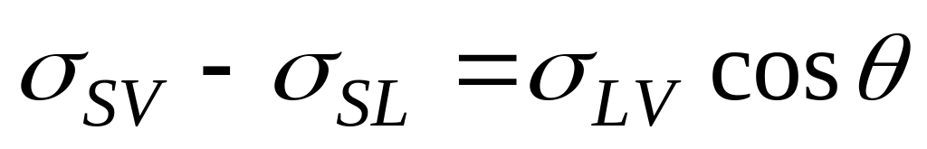 Исходя из условий термодинамического равновесия, степень смачивания твёрдого недеформированного тела жидкостью в соответствии с уравнением Юнга может быть выражена как соотношение между горизонтальными компонентами трёх межфазных напряжений (рис. 2. 2)
