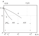 Массоперенос через границы раздела можно условно рассматривать как химическую адсорбцию от одной фазы к другой в межфазной области. Перенос массы сопровождается уменьшением свободной энергии системы. Однако в самом начале процесса взаимодействия при возникновении межфазной границы раздела химической реакции охватывается только межфазная область и, таким образом, соответствующее первоначальное уменьшение свободной энергии системы обусловлено уменьшением свободной энергии только в межфазной области (Рис. 2. 2 б,в), т. е. в области спая.