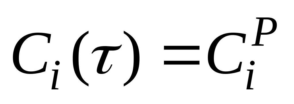 На стадии неравновесного растекания состава Ci(τ) со стороны твёрдой и жидких фаз на движущейся межфазной границе Y(τ) в процессе массопереноса стремятся к равновесным значениям и (Рис 2. 1 в п. 2…. 4). Эта стадия называется стадией граничной кинетики растворения. В этом случае скорость растекания в основном лимитируется вязкостью расплава и силой инерции :