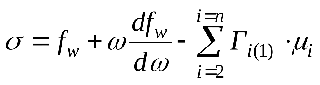 В этом частном случае поверхностное натяжение численно равно свободной поверхностной энергии. Для многокомпонентных жидких металлических систем имеем