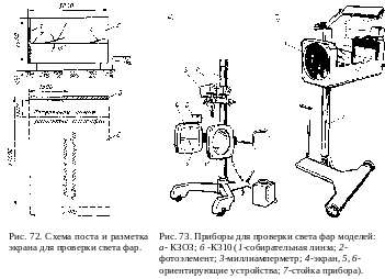2. Проверка установки фар прибором КЗОЗ или К310 (рис. 73) производится в последовательности операций.