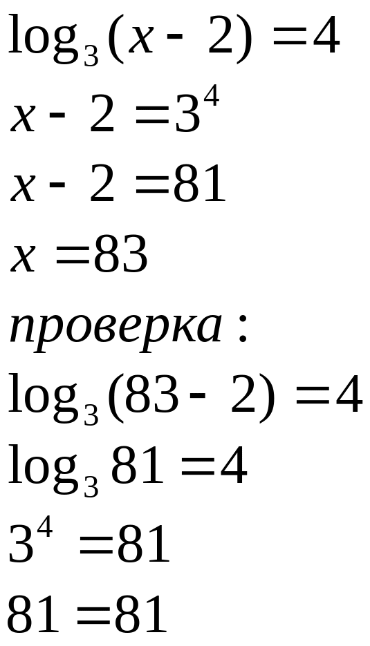 Например: а) решить логарифмическое уравнение log3(x −2) = 4.